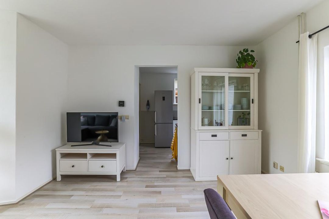 Begane grond: entree/hal met modern toilet. Woonkamer met laminaatvloer en erker ca. 20 m², gedeeltelijk open keuken met kelderkast en L-vormig keukenblok voorzien van gaskookplaat en afzuigkap. Berging/bijkeuken met CV ketel, aansluiting voor wasmachine en vaatwasser en deur naar de tuin.