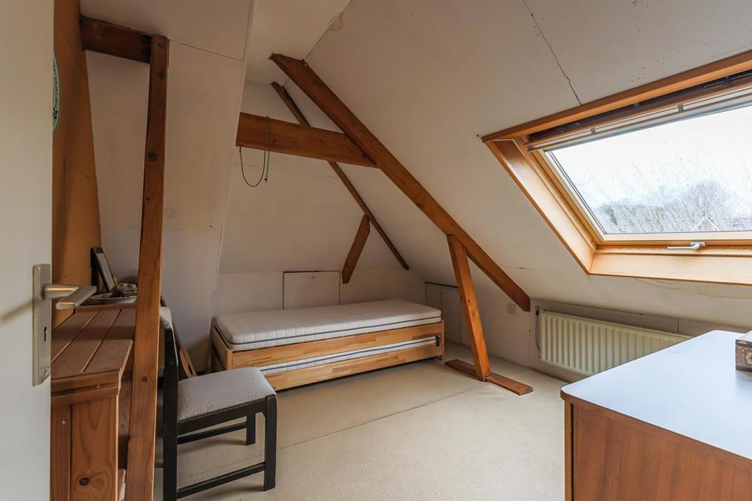 2e verd.: ruime overloop, 2 slaapkamers met dakraam, bergkamertje (voormalig “bodenkamertje”) en veel bergruimte.