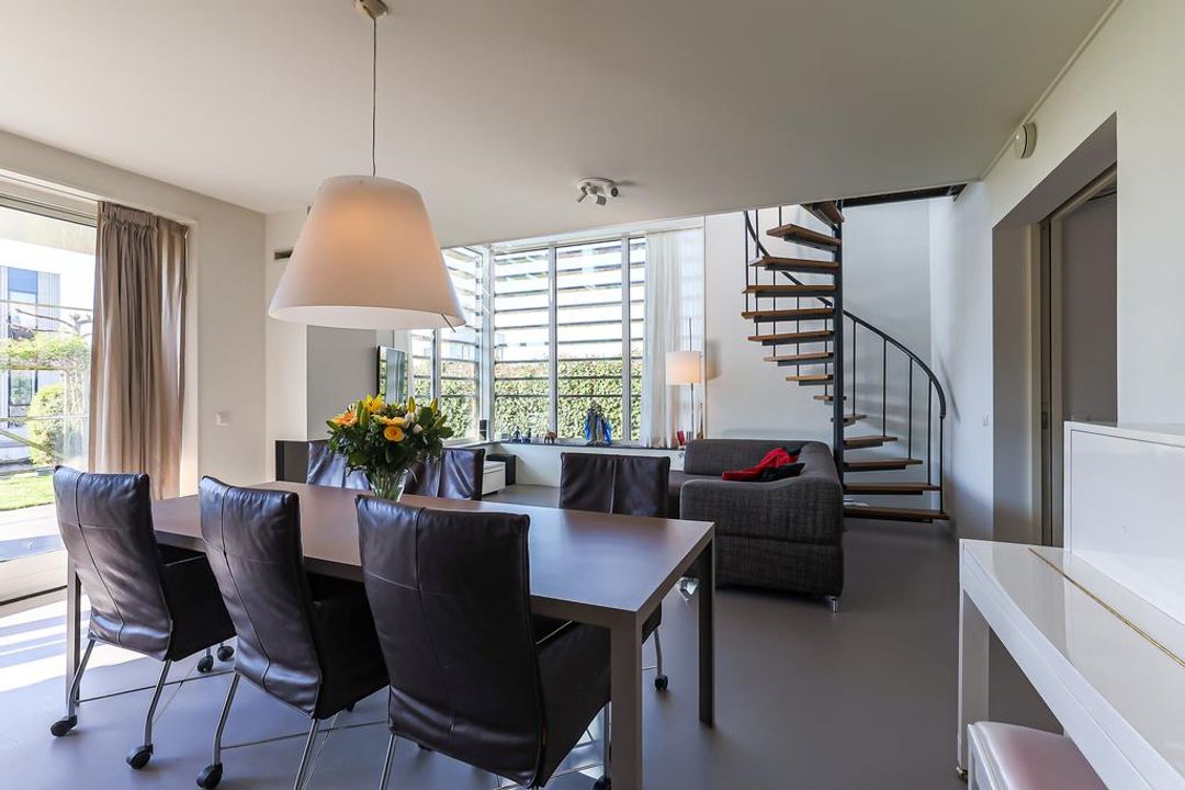 Indeling: entree, hal met meterkast en garderobekasten, modern toilet met fontein, woonkamer met gashaard, schuifdeuren naar de tuin en open inbouwkeuken (met Miele stoomoven, koelkast, diepvries, vaatwasser, combi-oven, keramische kookplaat en afzuigkap), de woonkamer staat via een schuifdeur in verbinding met een chillroom/werkkamer/kantoor met openslaande deuren naar een overdekt terras, kantoor-/werkruimte aan de voorzijde van de woning met deur naar de tuin, bijkeuken met aansluiting voor wasmachine/droger en buitendeur, bergkast, c.v.-ruimte, garage, carport.